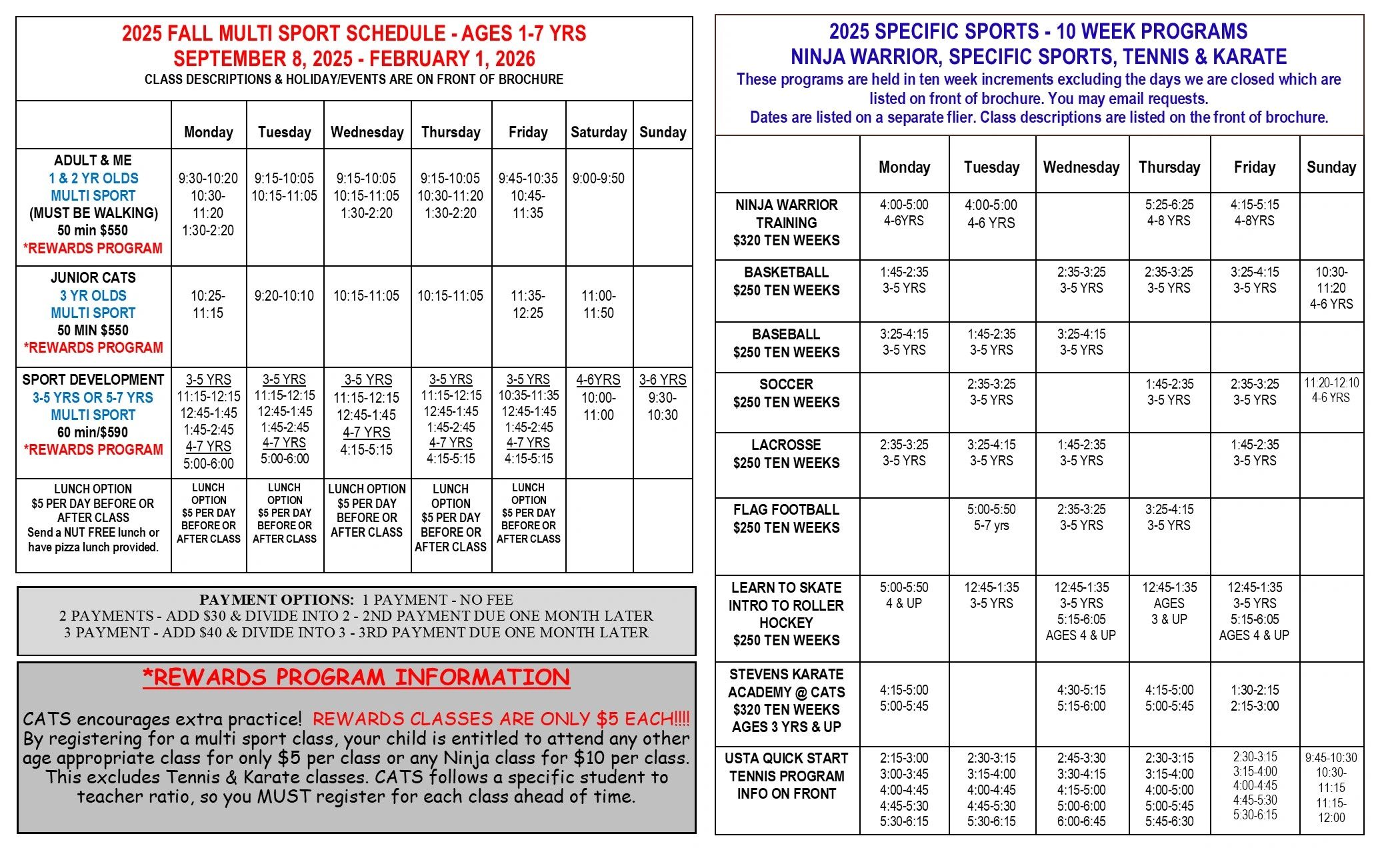 PARENTS/CAREGIVERS PARTICIPATE IN EACH 50 MINUTE MULTI SPORT CLASS! CATS INTRODUCES A DIFFERENT SPORT EACH WEEK! SONGS, EXERCISES & COLORFUL AGE APPROPRIATE EQUIPMENT HELP CHILDREN DISCOVER THEIR ATHLETIC POTENTIAL. TEACHER GUIDED ACTIVITIES DEVELOP EACH CHILDS PHYSICAL COMPETENCE. sports kids